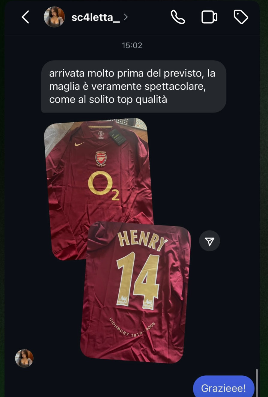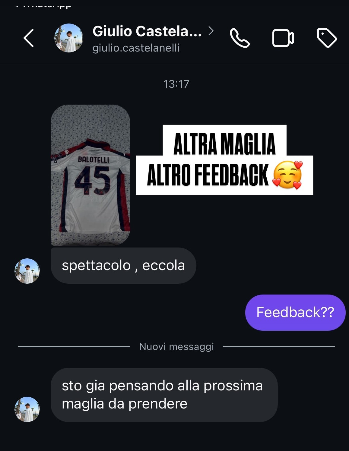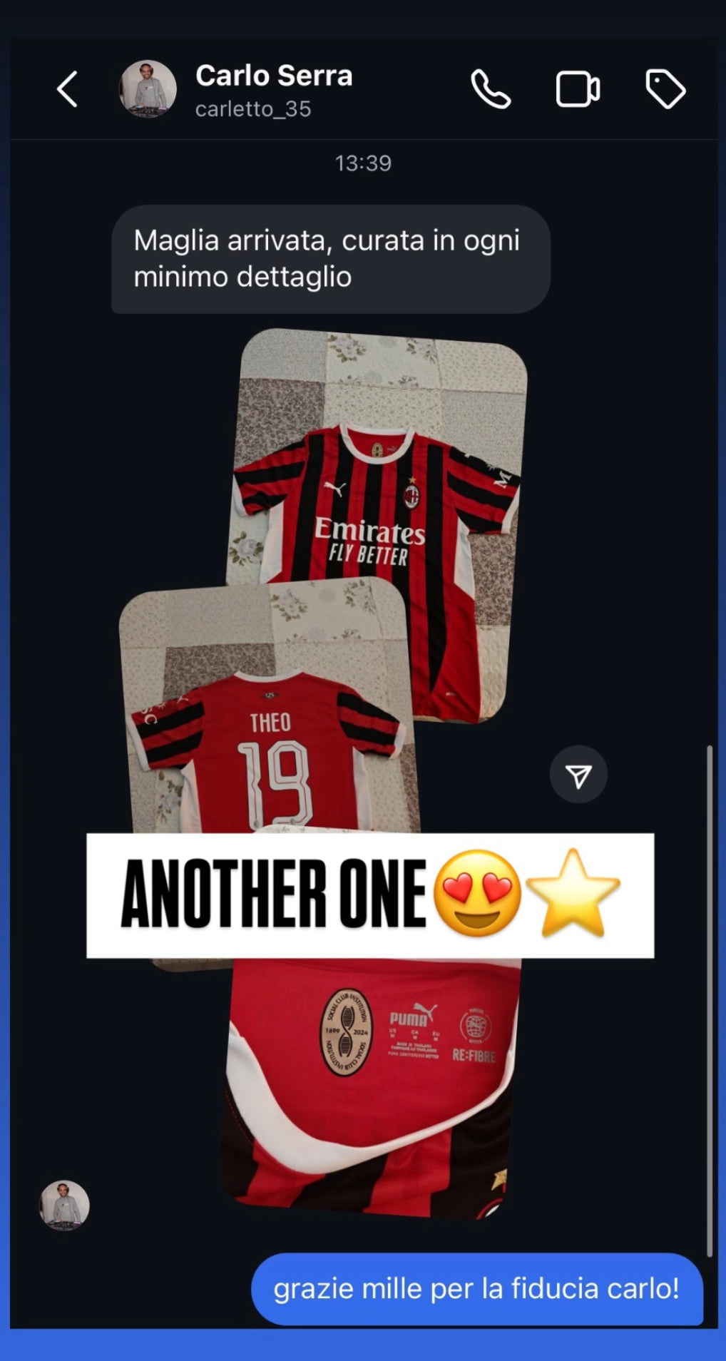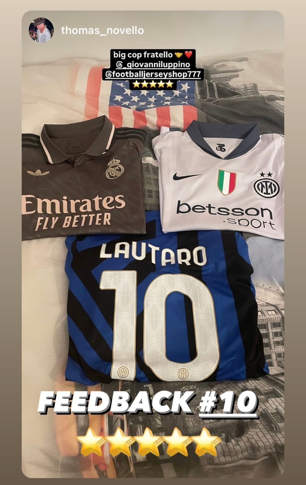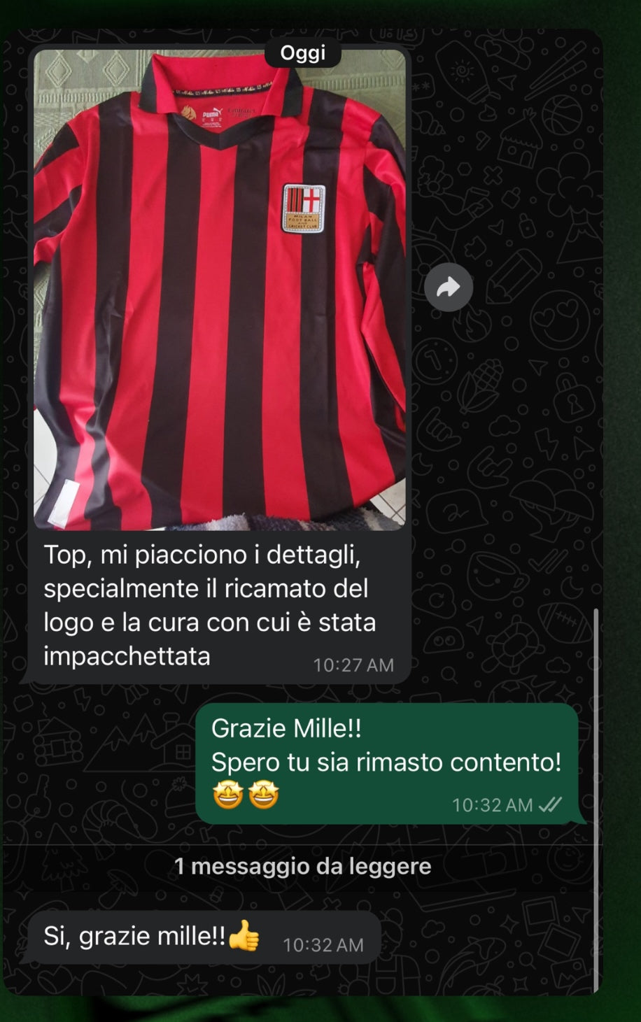 ⭐️⭐️⭐️⭐️⭐️ Maglia NerazzurriTessuto ottimo e dettagli curati. Arrivata in pochi giorni, l’ho già messa per vedere la partita… da brividi!